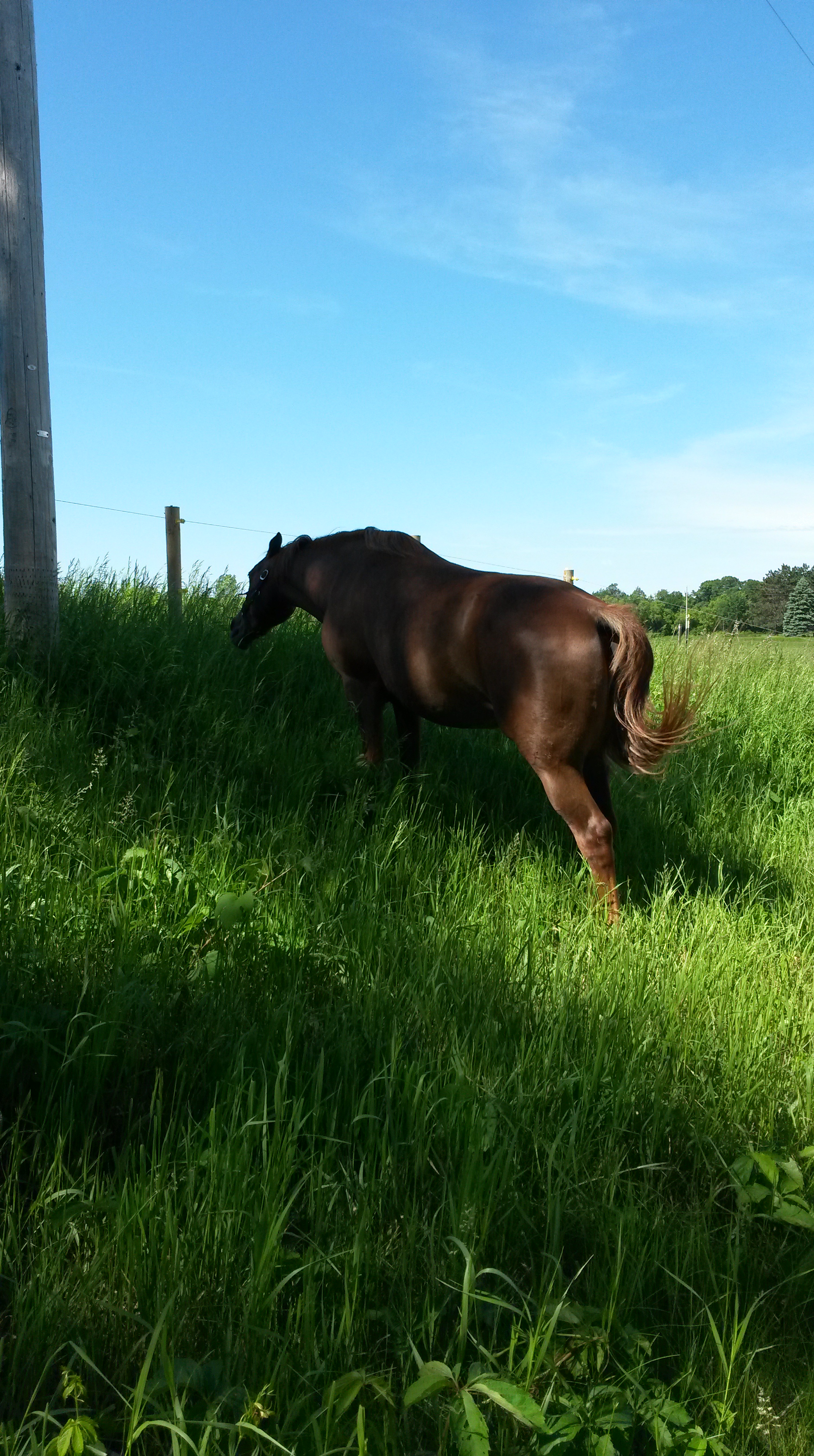 Horses. Apparently I was fascinated by horses since the tender age of 5 or so. I like having them. We used to ride, but don’t anymore, too many things get in the way. So the girls just enjoy their lives in peace. They don’t mind not being ridden, they would really just rather eat and sleep. In fact, how many people enjoy going to work? Most don’t. The same with horses. But our girls do have an mportant job. They poop. For the garden. Without them we would have to buy a lot of garden dirt.