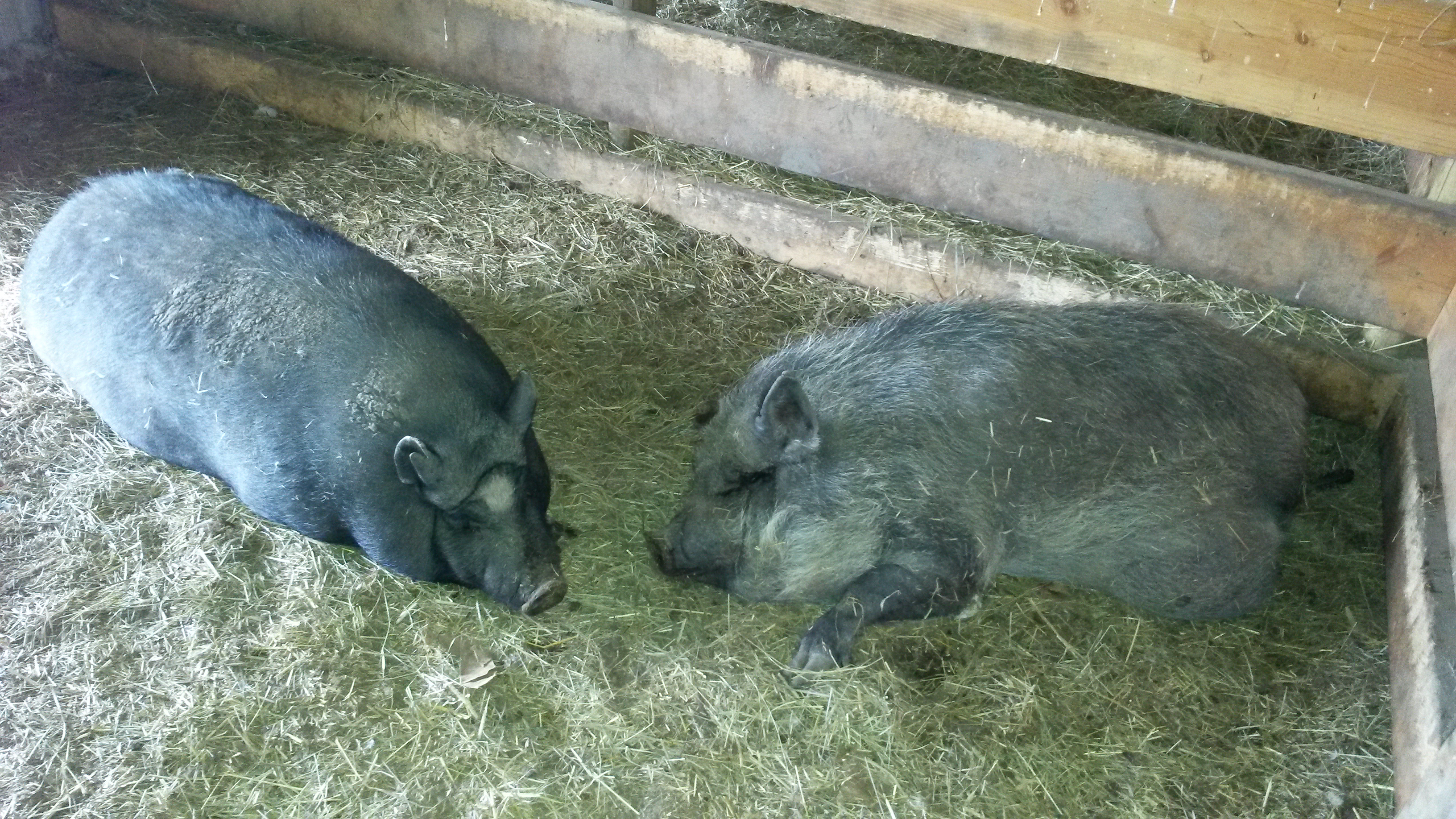 Pigs are special. We think that people who don’t like pigs lack a sense of humor. Just look at this jelly bean body on little spindly legs, the disk noses and little beady eyes! I can’t thank my Husband enough for introducing me to the potbelly pigs on our second date. When instead of going somewhere fancy after dinner, we went to see the piggies at his friend’s house. That was love at first oink (;