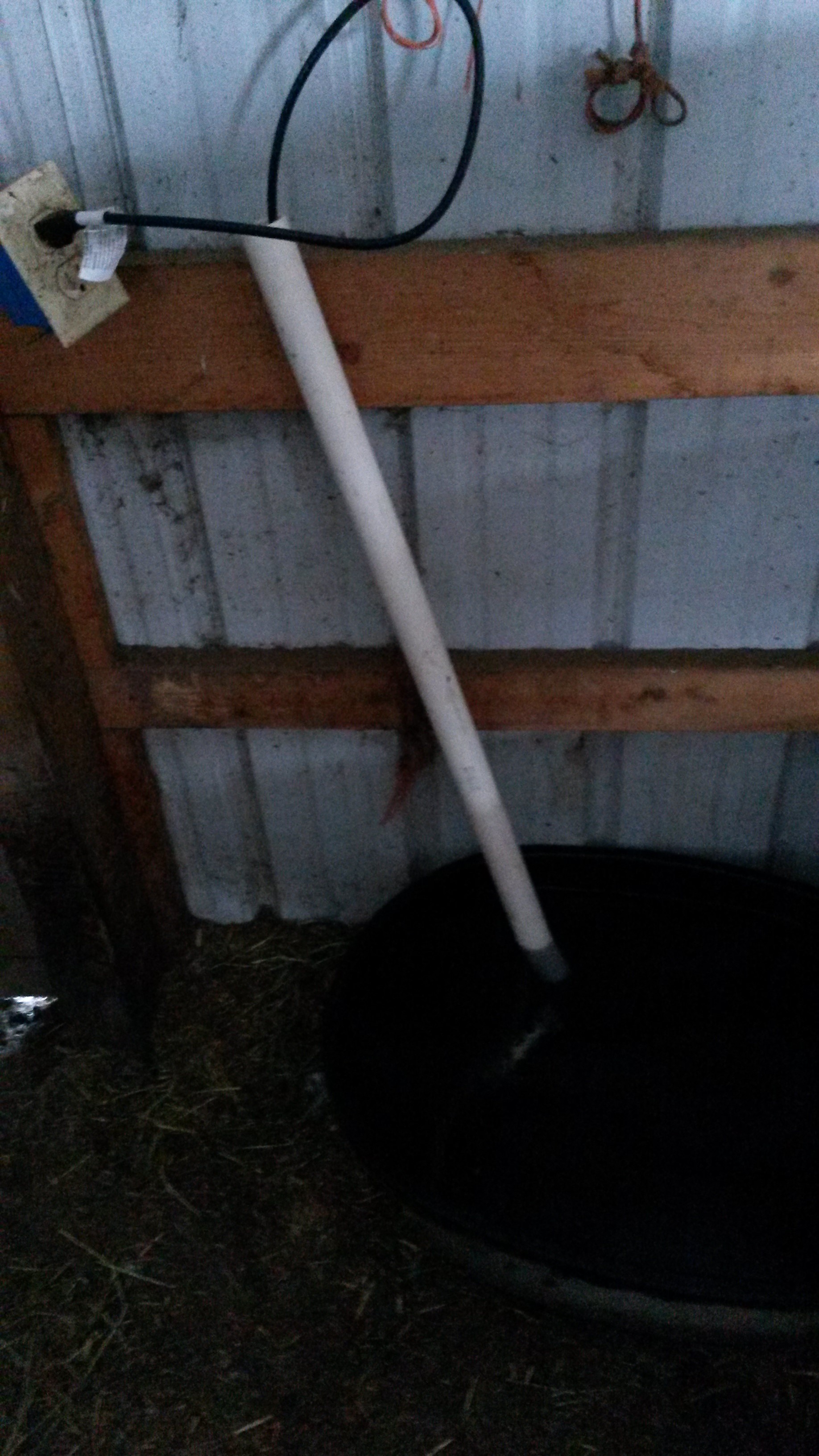It was year 2013. Minnesota winter season three. Pigs ate the water heater…again. Something needed to be done. Heaters are not cheap and breaking ice in the morning is not fun. The quick thing to do was to take a PVC pipe and use it as a cord protector. I wish the back wall was cleaner though when I took this picture…oh well…it’s the barn (;